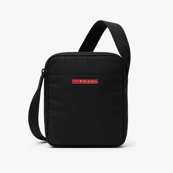 Rare nylon red-stripe shoulder bag from Prada Sport archives.